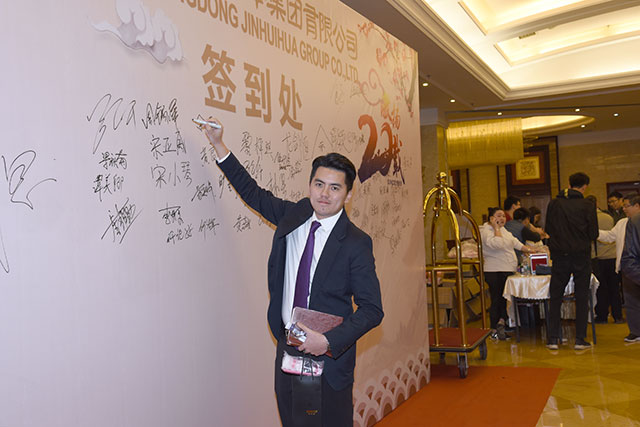 ----記廣東金輝華集團2018年度總結大會暨頒獎典禮 景象升平開泰運,金豬如意獲豐財, 1月26日,“激揚20載”—— 廣東金輝華集團2018年年終總結大會在開平市假日酒店隆重舉行,集團領導、區域公司、分公司負責人、項目負責人及全體員工出席了會議,大家歡聚一堂,共商大計,并共同回顧集團2018年走過的路程,展望2019年的奮斗目標,團結一致,斗志昂揚,信心百倍,!一踏進大廳,迎面的簽到墻溫馨動人