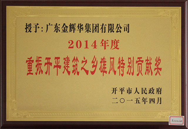 熱烈慶祝我公司榮獲重振開(kāi)平建筑之鄉(xiāng)雄風(fēng)特別貢獻(xiàn)獎(jiǎng)