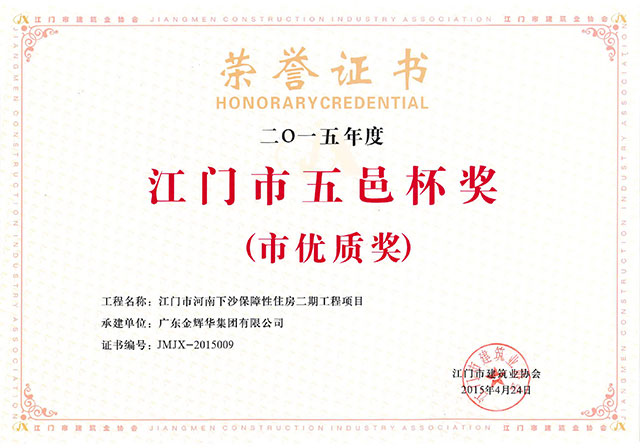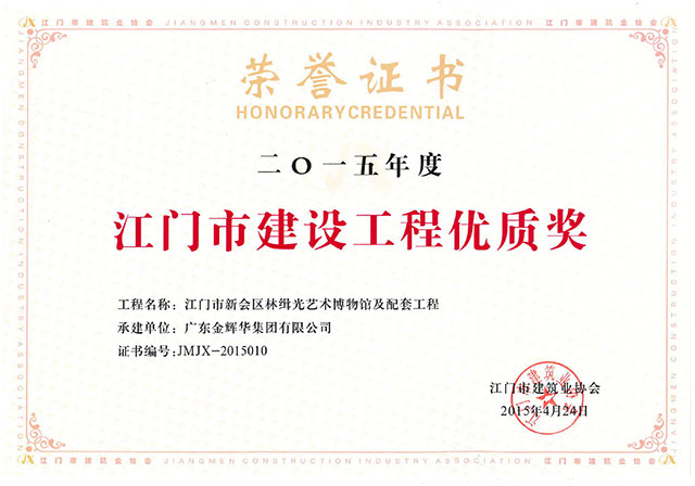 熱烈慶祝我公司榮獲江門(mén)市建設(shè)工程優(yōu)質(zhì)獎(jiǎng)