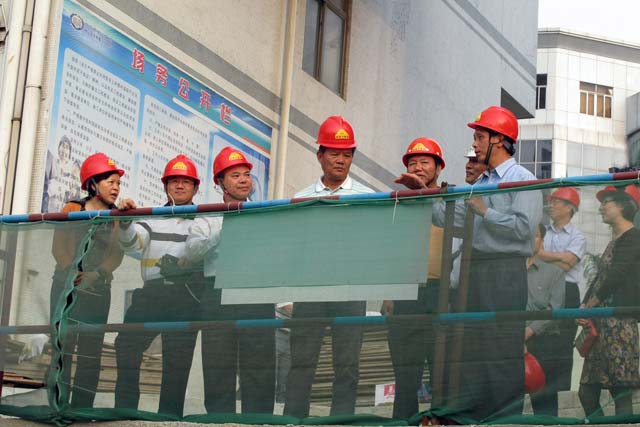 在黨的十八大召開(kāi)之際,江門(mén)市政協(xié)主席趙基耀率隊(duì)視察了我集團(tuán)公司總承包的江門(mén)市中心醫(yī)院外科住院大樓工程。2012年11月7日下午,政協(xié)主席趙基耀一行在市衛(wèi)生局、中心醫(yī)院院長(zhǎng)梁伯進(jìn)等人的陪同下來(lái)到我集團(tuán)公司江門(mén)市中心醫(yī)院外科住院大樓項(xiàng)目部現(xiàn)場(chǎng),詳細(xì)詢問(wèn)并了解工程的最新情況,我集團(tuán)公司副總裁陳達(dá)華對(duì)工程的進(jìn)度、質(zhì)量、安全、施工環(huán)境、工人生活及工程對(duì)周邊居民的影響情況等進(jìn)行了詳細(xì)的講解。 項(xiàng)目現(xiàn)場(chǎng)施工通