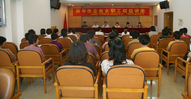 8月28日下午,市總工會聯合市婦聯在廣東 金輝華集團公司舉辦企業女職工權益講座。市總工會副主席譚文業、市婦聯主席林斌,廣東金輝華集團公司黨委 書記張解矛、工會主席陳維民都作了講話。講座由集團公司女職委高迎春主任主持,由市總工會女職委主任許素...