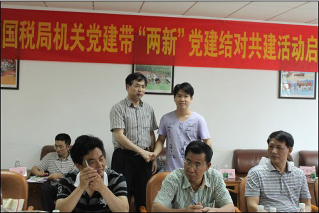 啟動儀式上,首先江門市國稅局的人員參觀了我集團的黨工青婦活動室、榮譽室。座談會上,雙方互相介紹了各自出席此次儀式的人員,后共建雙方的黨委分別對各自的黨委概況進行了介紹,使共建雙方更清楚地了解對方。儀式上,江門市國稅局機黨委向我集團黨委贈送了有關黨建工作的書籍,如十七大會議精神理解等。為切實實現共建目標,雙方根據各自黨支部的實際情況實現了江門市國稅局機關黨委各支部與我集團黨委各支部的共建結對,共同明確了通過結對共建活動目標:爭創全省乃至全國的‘兩新”組織黨建工作示范點。開平市委組織部劉威龍副部長在啟動儀式上,對“關于開展機關黨建帶‘兩新’黨建結對共建活動”的文件精神進行了解釋,并表示這是當前黨建的重要工作。長沙街道辦事處黨工委委員陳國強主任在啟動儀式上表示:將盡全力支持江門國稅局的“機關黨建帶‘兩新’黨建”的結對共建活動。
