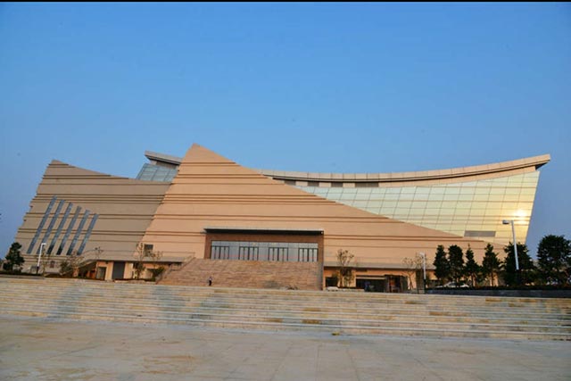 ㎡,建筑總高度29.41m,其中地上三層,地下一層,該工程看臺為鋼筋混凝土結(jié)構(gòu),周邊及屋面圍護為整體鋼結(jié)構(gòu),看臺平面呈八角形。臺山體育館總體造型是根據(jù)臺山市的地理位置,以“海浪”為設(shè)計載體,呈現(xiàn)三個“海浪”的建筑設(shè)計造型。主館由兩個“海浪”組成,副館由一個“海浪”組成,主次分明,造型獨特,構(gòu)思巧妙,雄偉壯觀,象征著臺山人民艱苦奮斗、不畏險阻、乘風破浪、勝利凱旋。