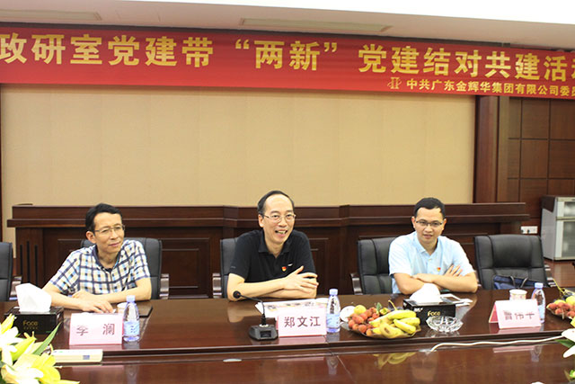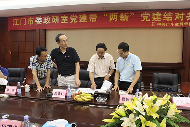 為切實(shí)加強(qiáng)“兩新”黨建工作,鞏固“結(jié)對共建”成果,推動黨建創(chuàng)新發(fā)展,6月14日下午,江門市委秘書長、市委政研室主任、市委改革辦主任鄭文江,市委政研室副主任、黨支部書記李瀾一行到我司開展黨建專題調(diào)研,并召開黨建“結(jié)對共建”工作座談會。開平市委辦副主任曹偉平、長沙街道辦黨工委委員蘇國亮、我司董事局主席周珉興、黨委書記、副總裁張解矛、黨委副書記、副總裁盧文權(quán)、工會主席陳維民以及我司黨委班子成員參加了會議。